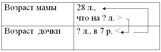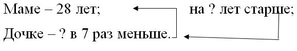 Краткое условие: Маме 28 лет, а её дочке в 7 раз меньше. На сколько лет мама старше дочки?