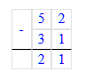 52 – 31 = 21;