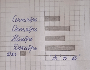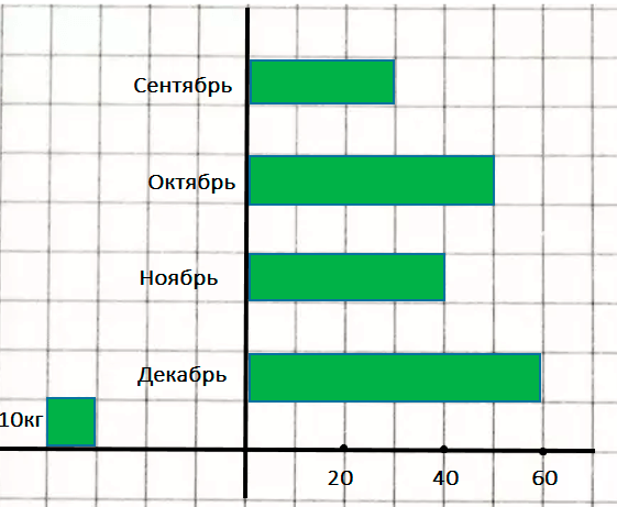Если в декабре привезли 60 кг моркови, значит, диаграмма за декабрь будет соответствовать шести клеткам.