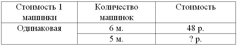 1) 48 : 6 = 8 р. – цена одной машинки