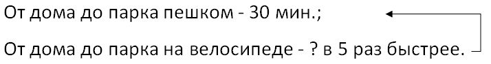 Краткое условие: От дома до парка пешком Толя добирается за 30 мин, а на велосипеде в 5 раз быстрее. За сколько минут Толя доезжает до парка на велосипеде?