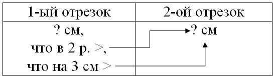 Краткое условие: Саша и Коля измеряли одни и те же отрезки. Саша сказал, что один отрезок в 2 раза длин¬ нее другого. По словам Коли один отрезок на 3 см длиннее другого. Какой длины эти отрезки? Начерти их.