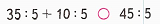 35 ÷ 5 + 10 ÷ 5 = 45 ÷ 5, так как 35 ÷ 5 + 10 ÷ 5 = 7 + 2 = 9, а 45 ÷ 5 = 9;
