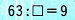 Краткое условие: Какое число надо записать в окошко, чтобы равенство 63 : ⎕ = 9 стало верным?