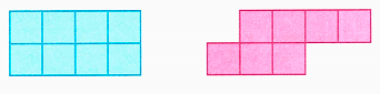 Голубая фигура состоит из 8 квадратов, а площадь розовой фигуры – из 7 таких квадратов. Следовательно, площадь голубой фигуры больше.