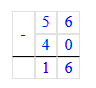 56 - 40 = 16; 16 ÷ 4 = 4.