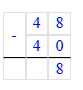 48 - 40 = 8; 8 ÷ 4 = 2.