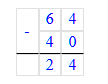 64 - 40 = 24; 24 ÷ 4 = 6.