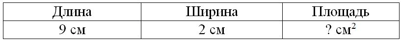 Краткое условие: 1) Вычисли площадь прямоугольника, длины сторон которого 9 см и 2 см. Какими ещё могут быть длины сторон прямо-угольника с такой площадью?