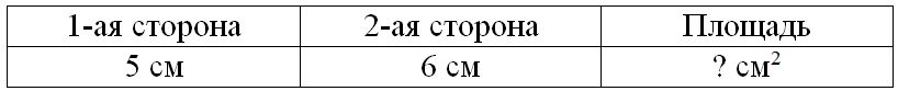 Краткое условие: Вычисли площадь прямоугольника со сторонами 5 см и 6 см.
