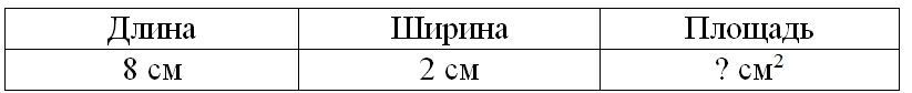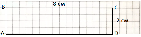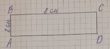 Краткое условие: Начерти прямоугольник ABCD, длины сторон которого 8 см и 2 см. Найди его площадь.
