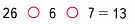 26 – 6 – 7 = 20 – 7 = 13;