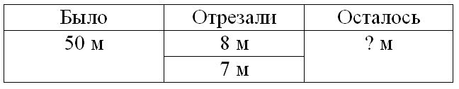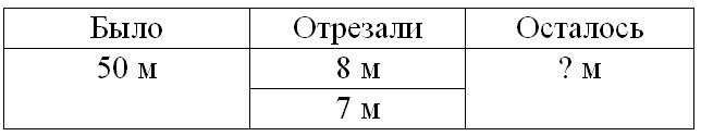 Краткое условие: Длина провода 50 м. Сначала от него отрезали 8 м, потом — 7м. Сколько метров провода осталось? Реши задачу. Найди способ проверить своё решение.