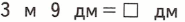 Так как 3 м = 30 дм, то 3 м 9 дм = 30 дм + 9 дм = 39 дм;