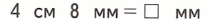 Так как 4 см = 40 мм, то 4 см 8 мм = 40 мм + 8 мм = 48 мм;