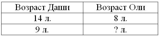 Краткое условие: Даше 14 лет, а Оле 8 лет. Сколько лет было Оле, когда Даше было 9 лет?