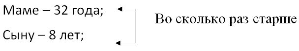 1) 32 : 8 = 4 р. – во столько раз мама старше