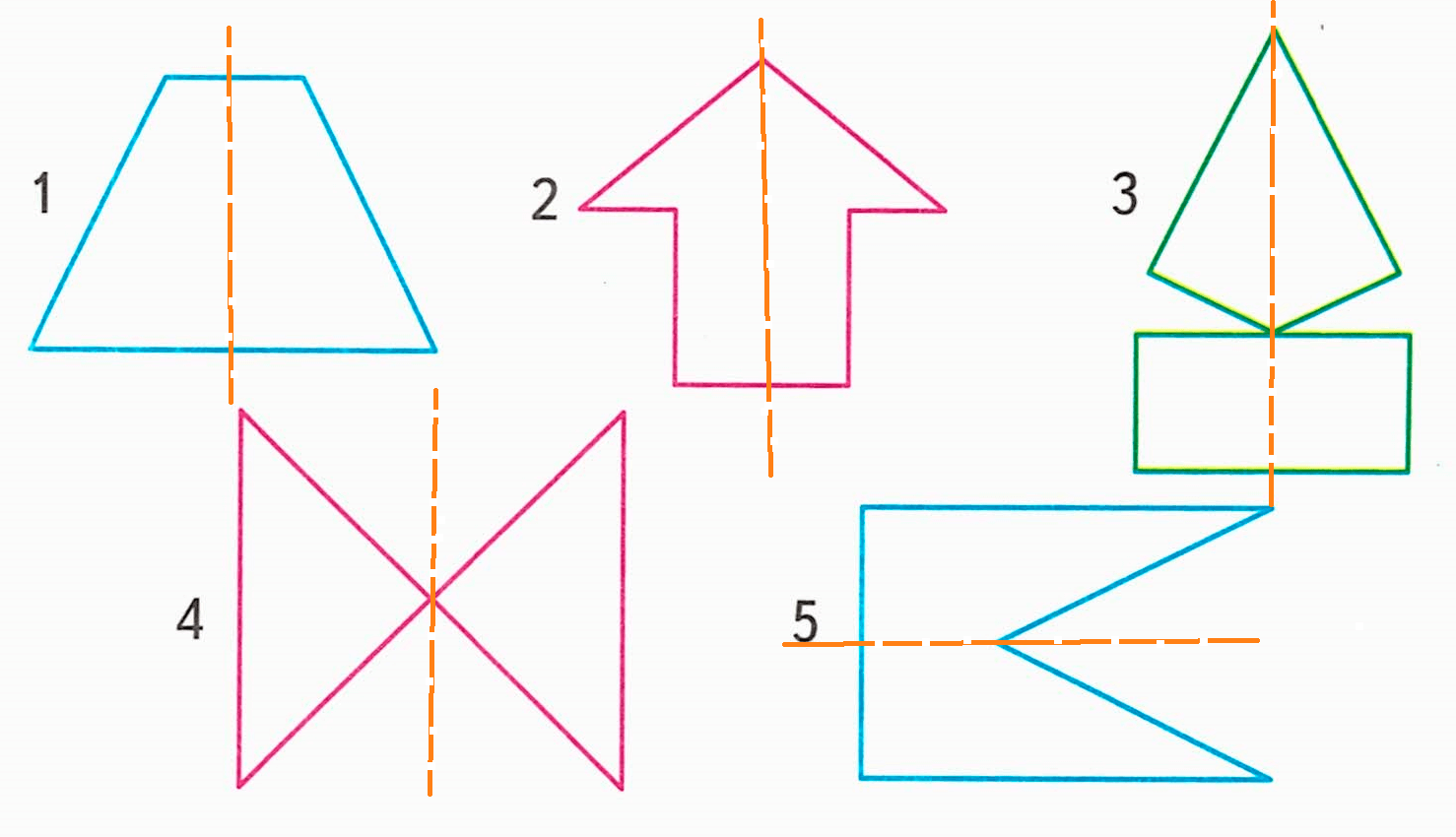 6) Подумаем, верно ли, что все фигуры 1 – 5 будут симметричными:
