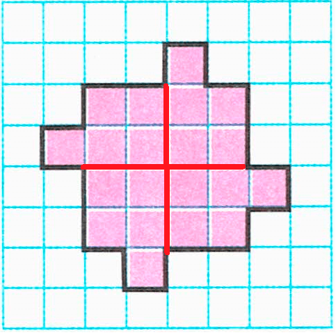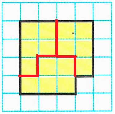 4) Разделим вторую фигуру на четыре такие же части так, чтобы линии деления шли по сторонам клеток: