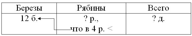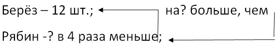 1) В школьном дворе росло 12 берёз, а рябин в 4 раза меньше. Сколько всего деревьев росло в школьном дворе?