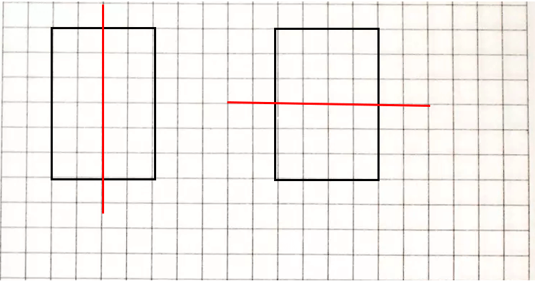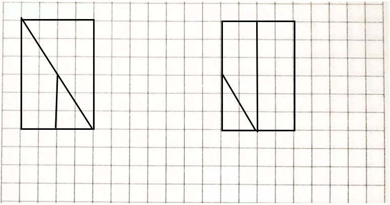 Краткое условие: 1) Из каких трёх фигур можно сложить прямоугольник? Запиши их номера. Сколькими способами можно это сделать? 2) Начерти такой прямоугольник и проведи в нём оси симметрии.