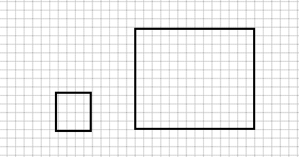 5) Подумаем, во сколько раз сторона первого квадрата меньше, чем сторона второго: