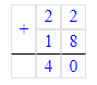 1. 2 + 20 + 18 = 22 + 18 = 40;