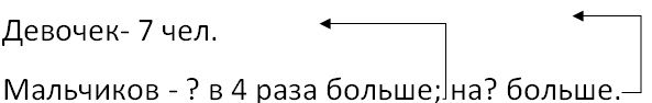 Краткое условие: В школьном оркестре 7 девочек, а мальчиков в раза больше, чем девочек. Задай вопрос к условию задачи так, чтобы получить ответ: на 21 мальчика. Запиши решение.