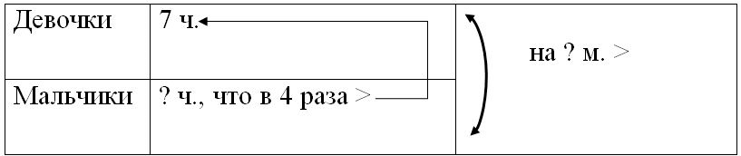 1) 7 ∙ 4 = 28 м. – количество мальчиков