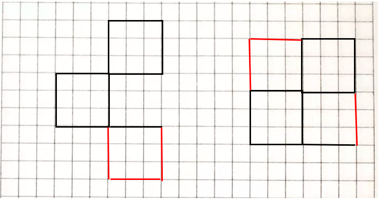 2) Подумаем, как переложить 3 палочки так, чтобы получилось 4 маленьких одинаковых квадрата и 1 большой: