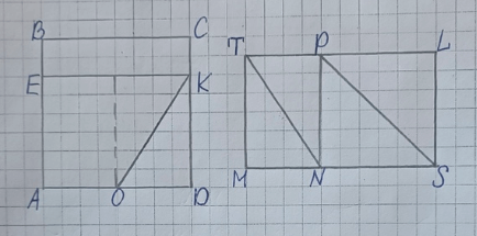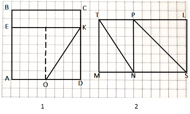 2. Чтобы найти площадь четырёхугольника ЕКОА, нужно к площади прямоугольника, где сторона ОК является диагональю прямоугольника, прибавить площадь треугольника ОКD.