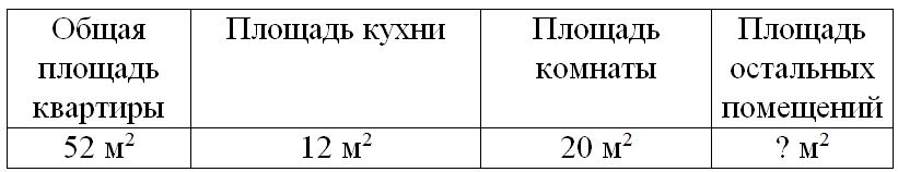 Краткое условие: Рассмотри план квартиры, на котором за 1 м2 условно принята 1 клетка. Узнай по плану площади комнаты и кухни. Сосчитай, сколько квадратных метров занимают остальные помещения, если площадь всей квартиры 52 м2.