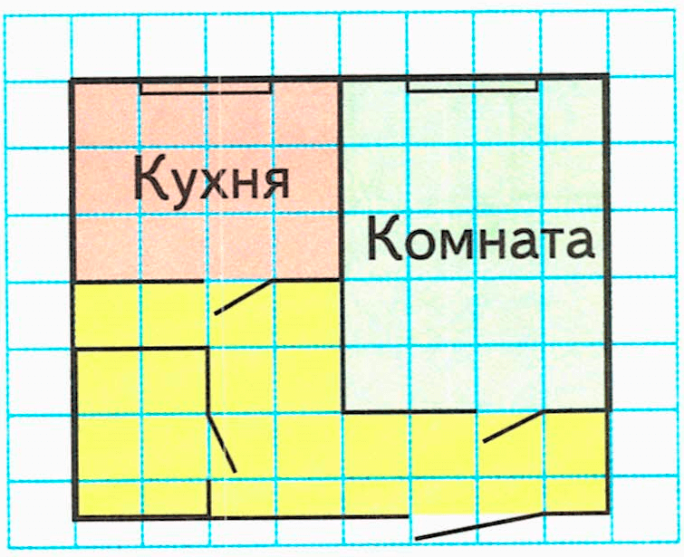 2) Узнаем по плану площадь комнаты при условии, что за 1 м² условно принята 1 клетка: