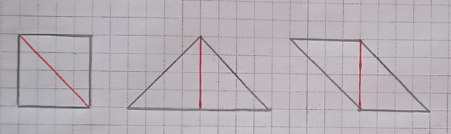 3) Проведем в каждой фигуре один отрезок так, чтобы стало видно, что все три фигуры имеют одинаковые площади: