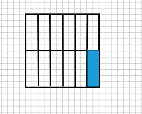 Голубой прямоугольник разделён на 6 равных частей.