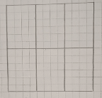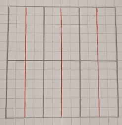 2) Начертим в тетради квадрат со стороной 6 см и разделим его на 6 равных частей: