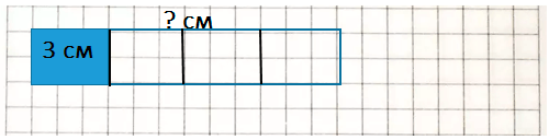 4) Подумаем, как узнать длину всей полоски при условии, что длина одной четвёртой части полоски равна 3 см: