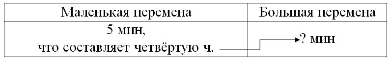 Краткое условие: Маленькая перемена длится 5 мин, что составляет четвёртую часть большой перемены. Сколько минут длится большая перемена?
