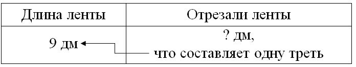 Краткое условие: Длина ленты 9 дм. Отрезали одну треть этой ленты. Сколько дециметров ленты отрезали?