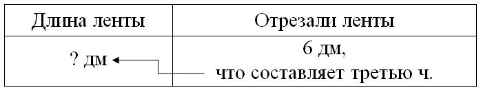 Краткое условие: Отрезали 6 дм ленты. Это третья часть всей ленты. Чему равна длина всей ленты?