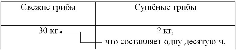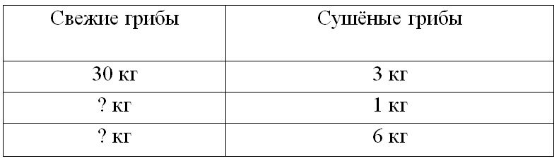 1) 30 : 3 = 10 кг – для 1 кг сушёных грибов
