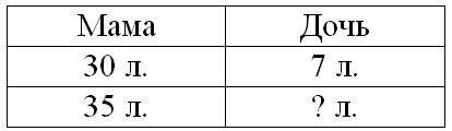 Краткое условие: Когда матери было 30 лет, дочери было 7 лет. Сейчас матери 35 лет. Сколько лет дочери?