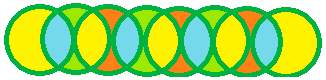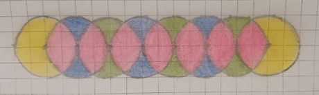3) Начертим окружности радиусом 1 см с центром в каждой отмеченной точке и раскрасим полученный узор: