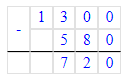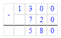 2) 1 300 - 720 = 580 уч. – во 2 школе