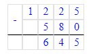 3) 1 225 - 580 = 645 уч. – в 1 школе