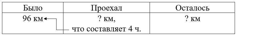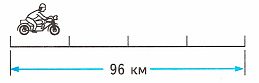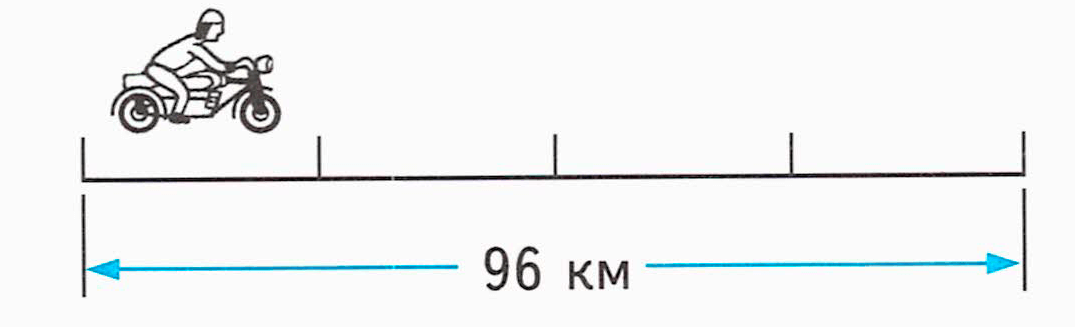 Краткое условие: Расстояние между посёлками 96 км. Мотоциклист проехал четверть пути. Сколько километров ему осталось?
