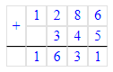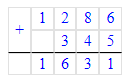 12 м 86 см+3 м 45 см=1286 см+345 см=1631 см=16 м 31 см;