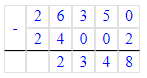 26 кг 350 г-24 кг 002 г=26350 г-24002 г=2348 г=2 кг 348 г.