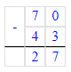 2) 70 - 43 = 27 (в.)
