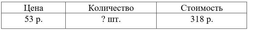 Краткое условие: Известна цена одного предмета и общая стоимость покупки. Как найти количество предметов? Составь и реши задачу.